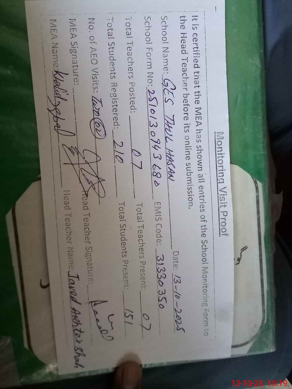 | EMIS Code: 31330350 | Name of School: GES THUL HASSAN KHAN | |||