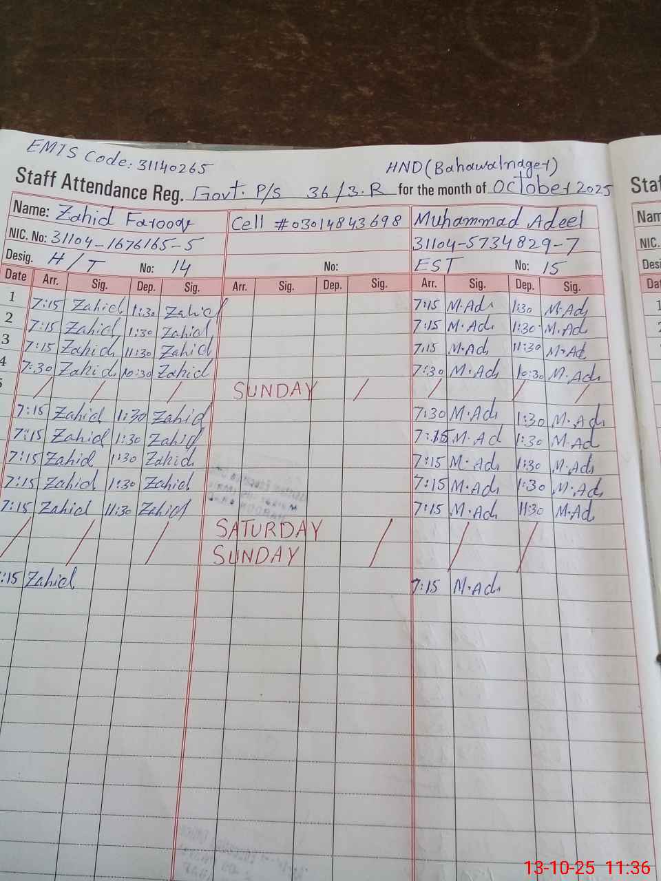 | Name: Za**** Fa**** Designation: (School Headmaster's/Headmistress's) PST Phone/Cell Number: 03**** |