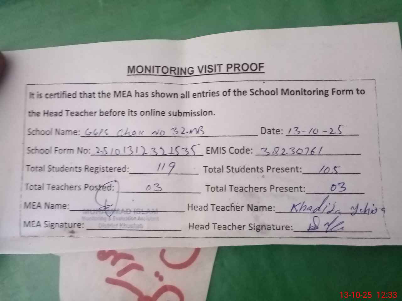 | EMIS Code: 38230761 | Name of School: GGPS CHAK NO. 32 MB | |||