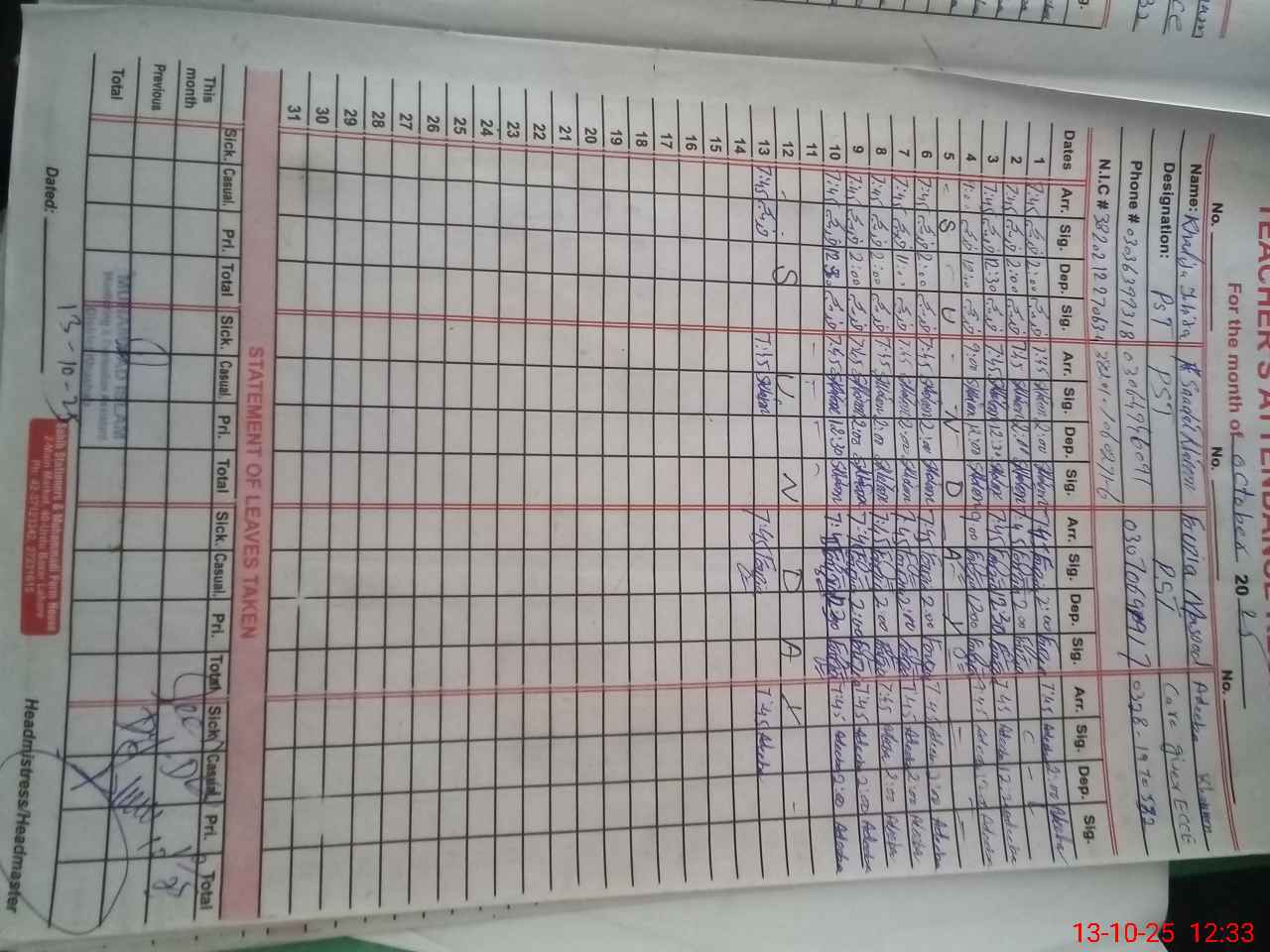 | Name: Kh**** Ta**** Designation: (School Headmaster's/Headmistress's) PST/PTC/JV Phone/Cell Number: 03**** |