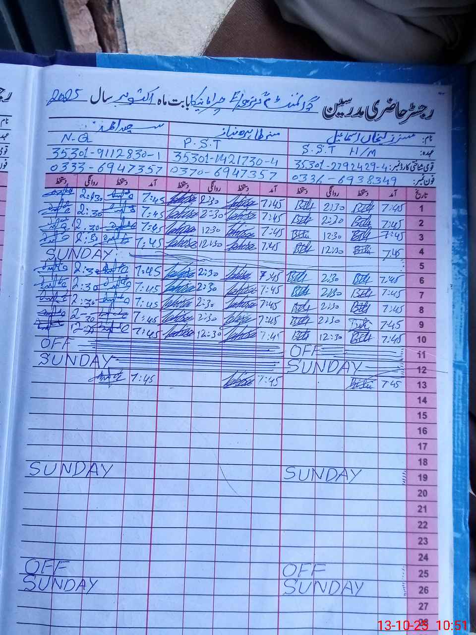 | Name: Zu**** Bi**** Designation: (School Headmaster's/Headmistress's) SST GEN Phone/Cell Number: 03**** |