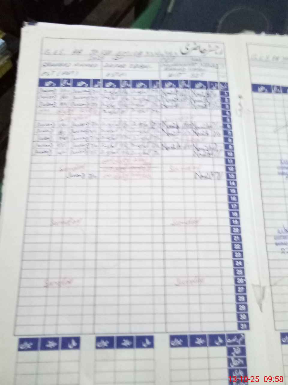| CNIC | Full Name | Designation | R/C | Absence During Last Calender Month |
