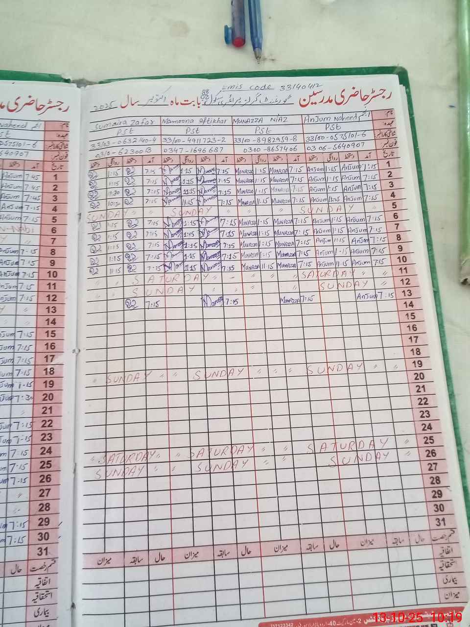 | Name: Mu**** Ni**** Designation: (School Headmaster's/Headmistress's) PST Phone/Cell Number: 03**** |