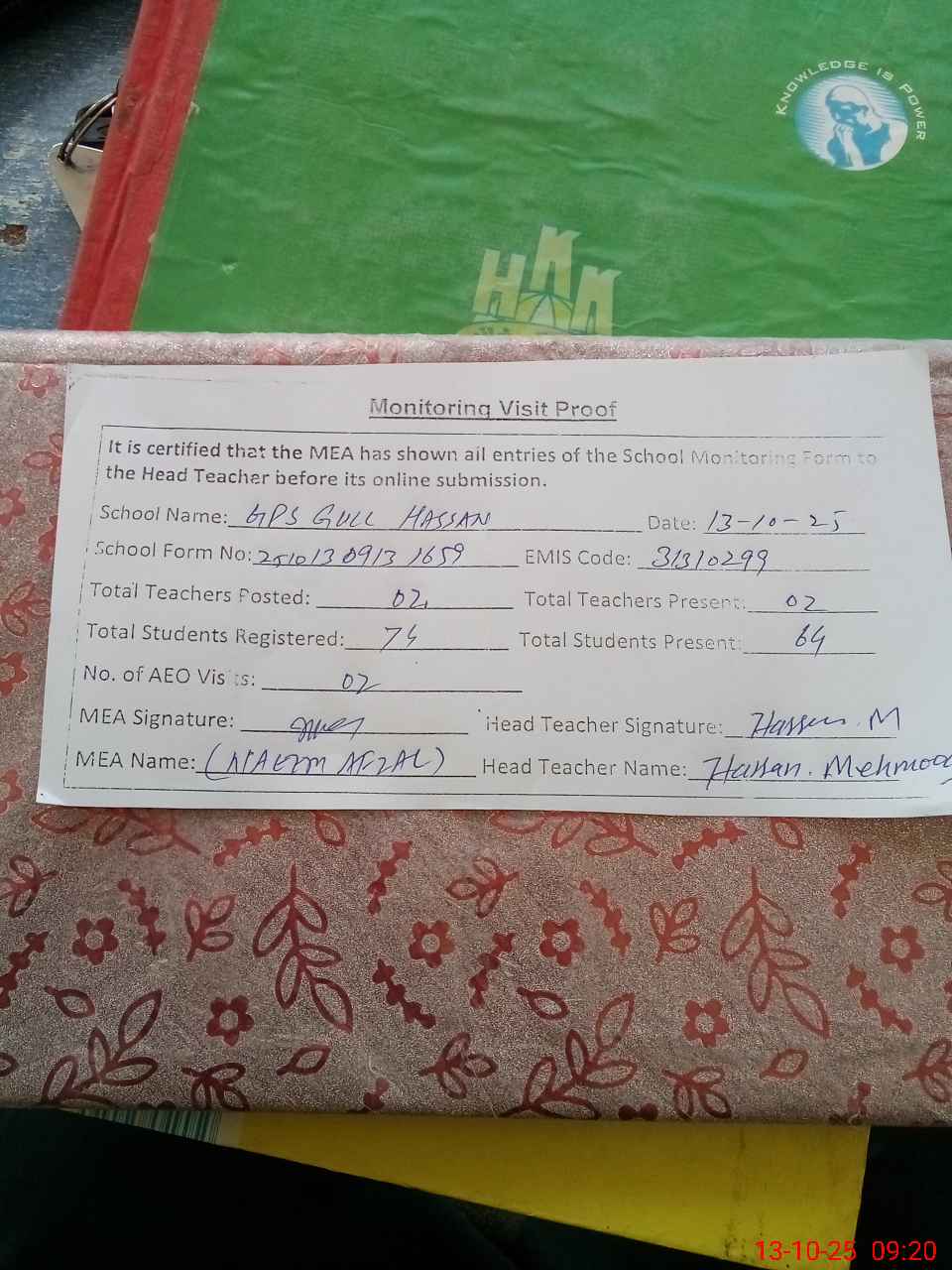 | EMIS Code: 31310299 | Name of School: GPS GULL HASSAN | |||