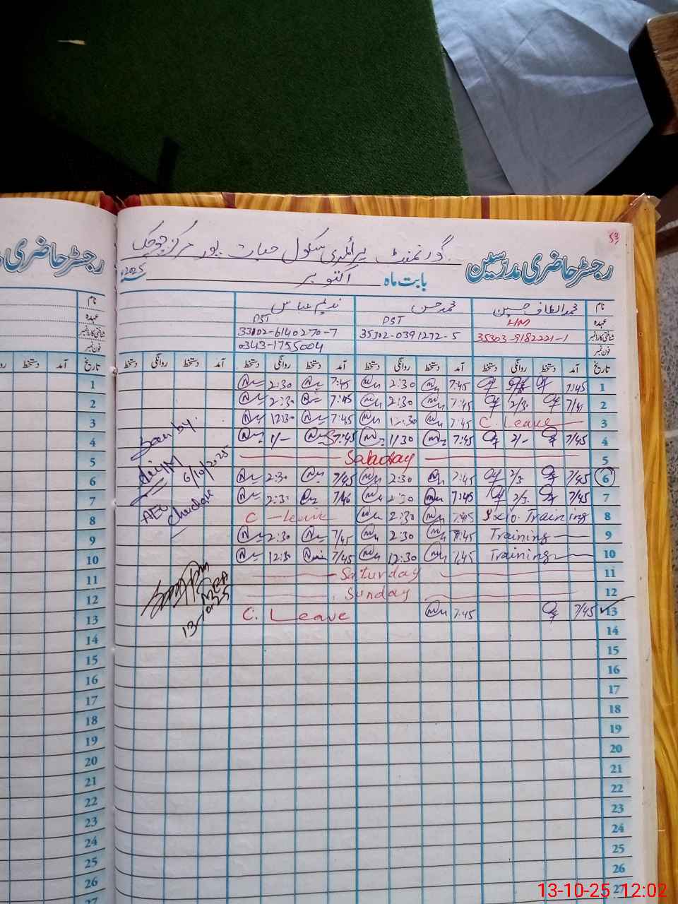 | Name: Mu**** Al**** Hu**** Designation: (School Headmaster's/Headmistress's) PST Phone/Cell Number: 03**** |