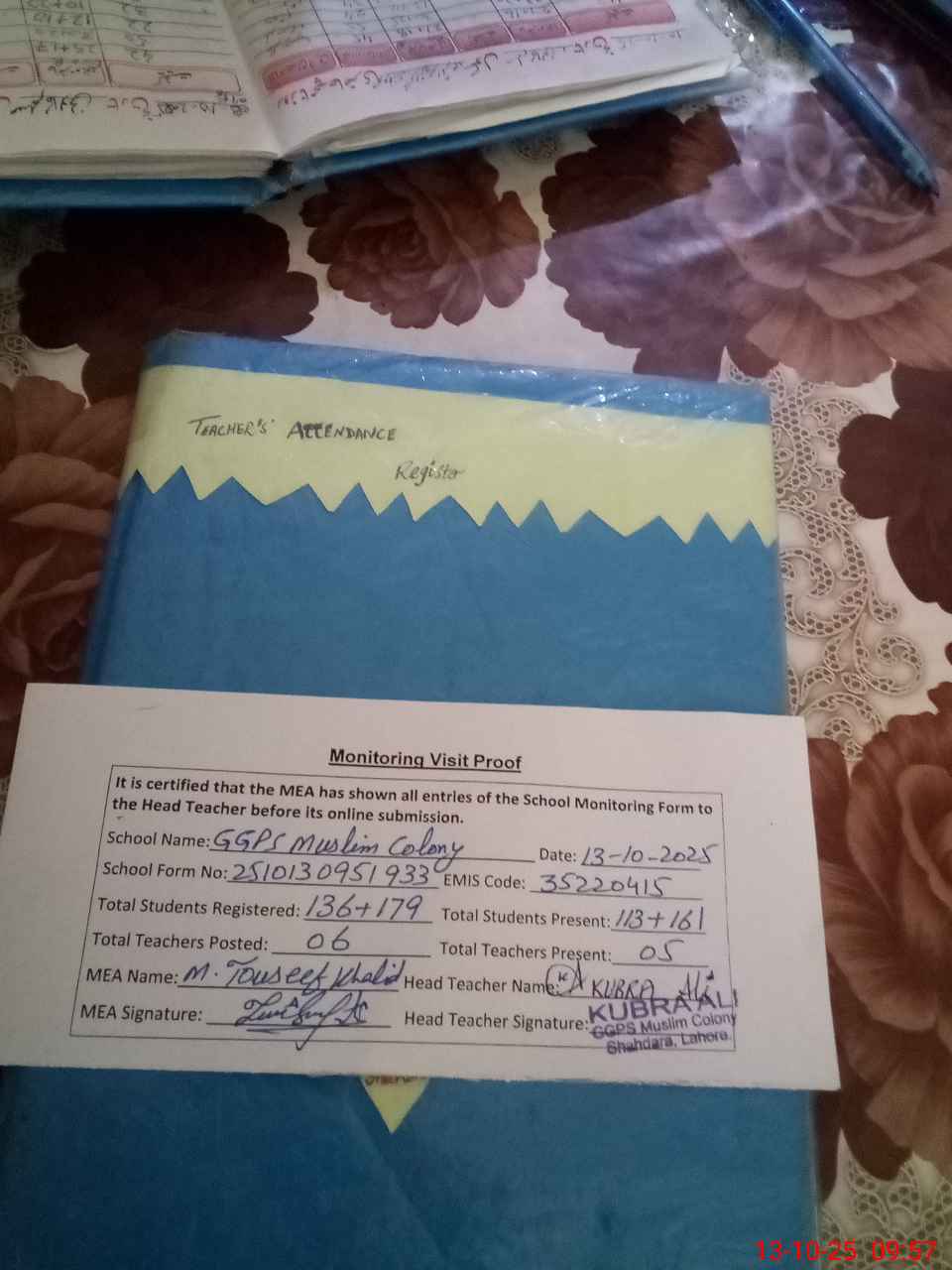 | EMIS Code: 35220415 | Name of School: GGPS MUSLIM COLONY SHAHDARA | |||