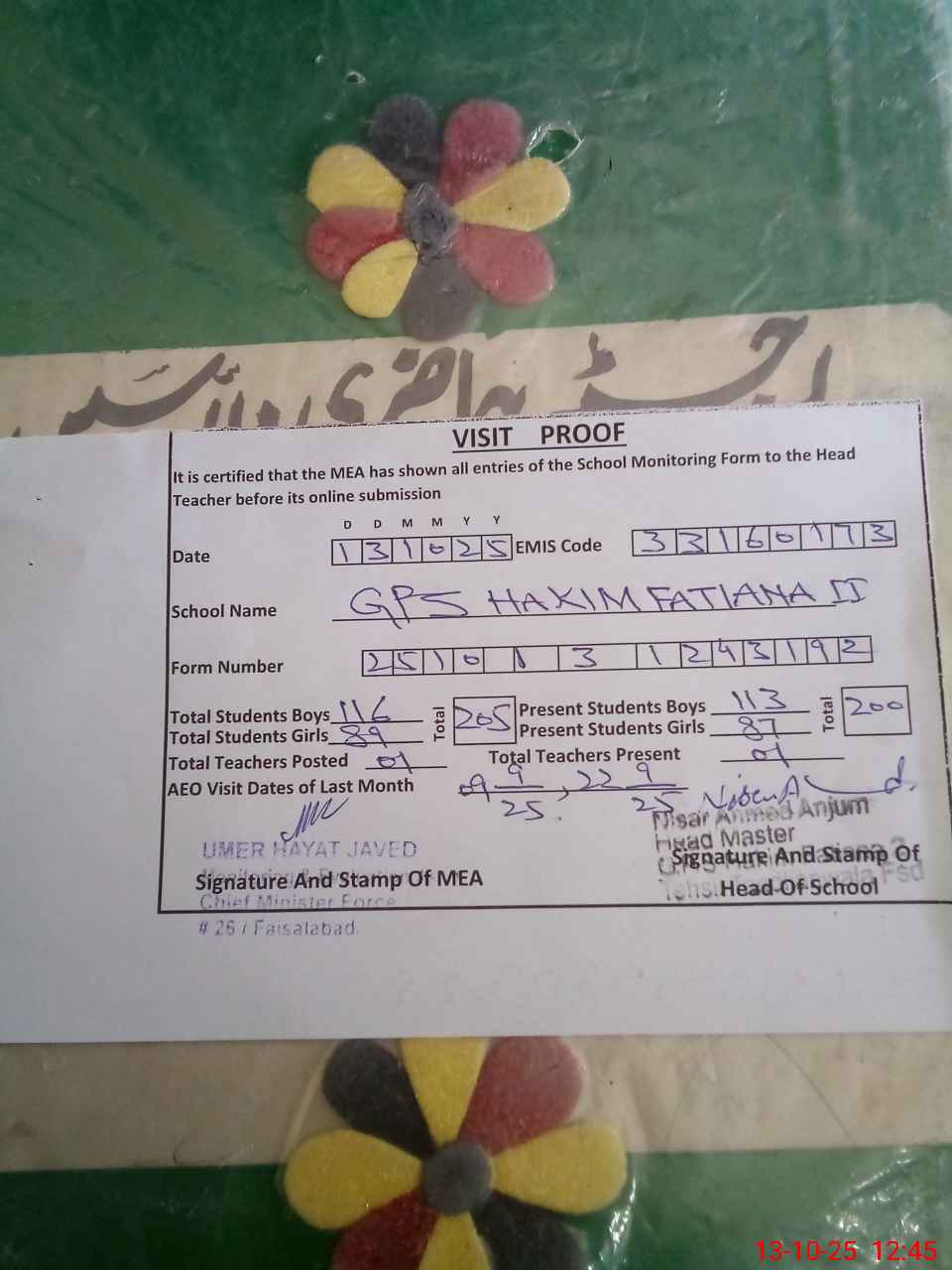 | Certified that this School was Inspected by the Undersigned MEA/DMO Today and the Information Stated Above is as Per Record. | |||||