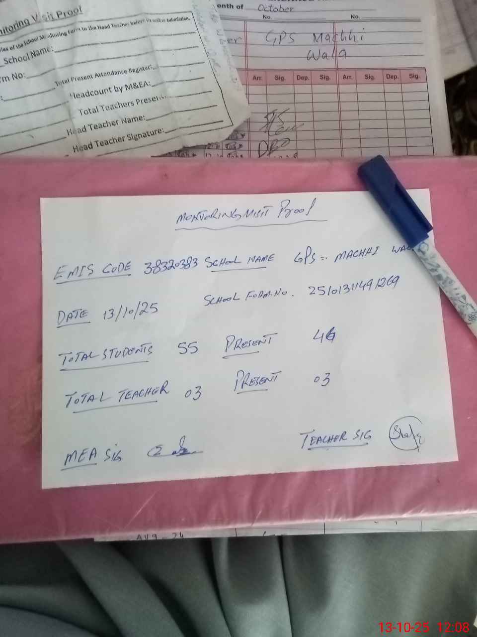 | Attendance Register | Head Teacher | MEA with School | Visit Proof |