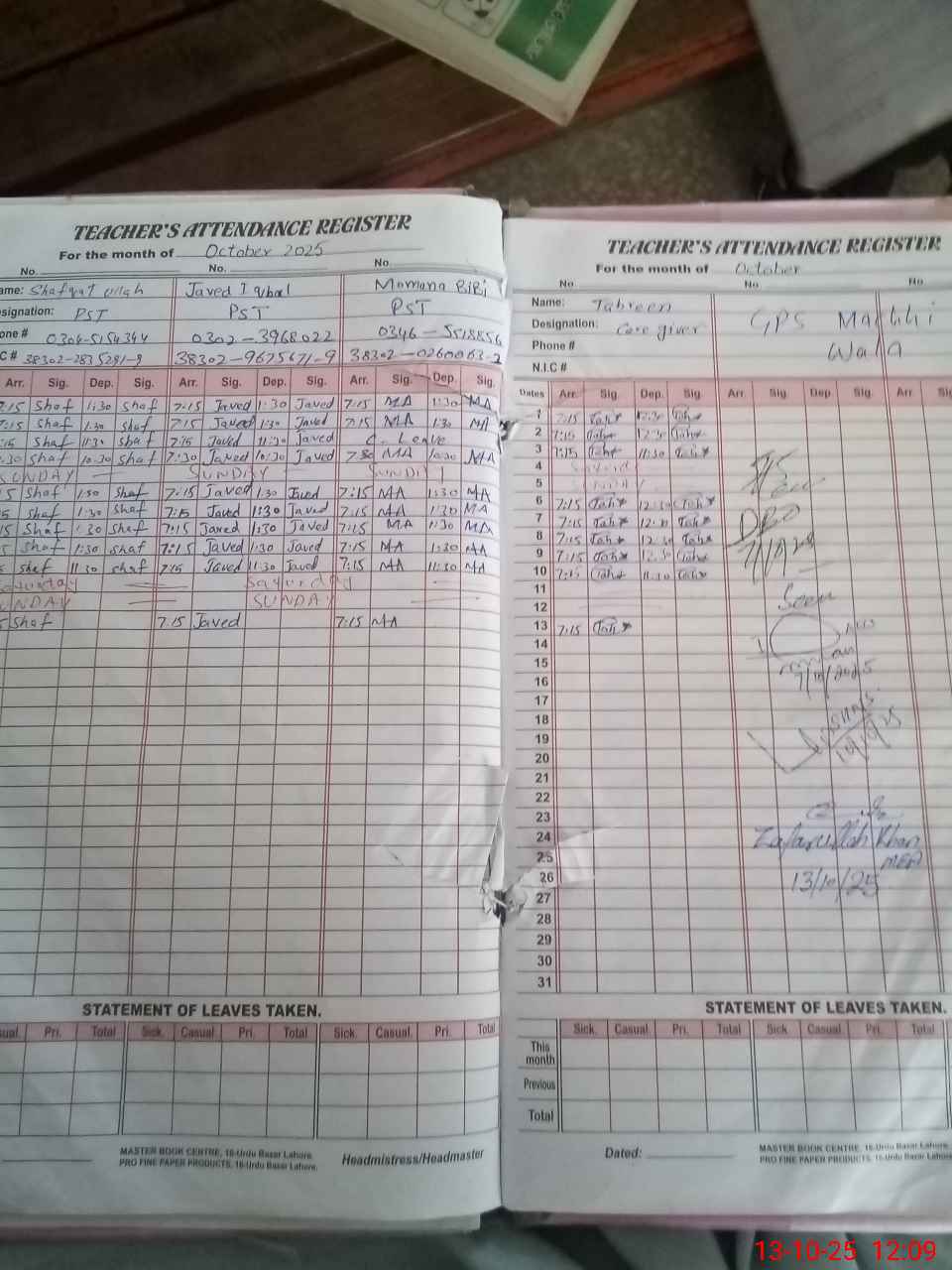 | Name: Sh**** ul**** Kh**** Designation: (School Headmaster's/Headmistress's) PST Phone/Cell Number: 03**** |
