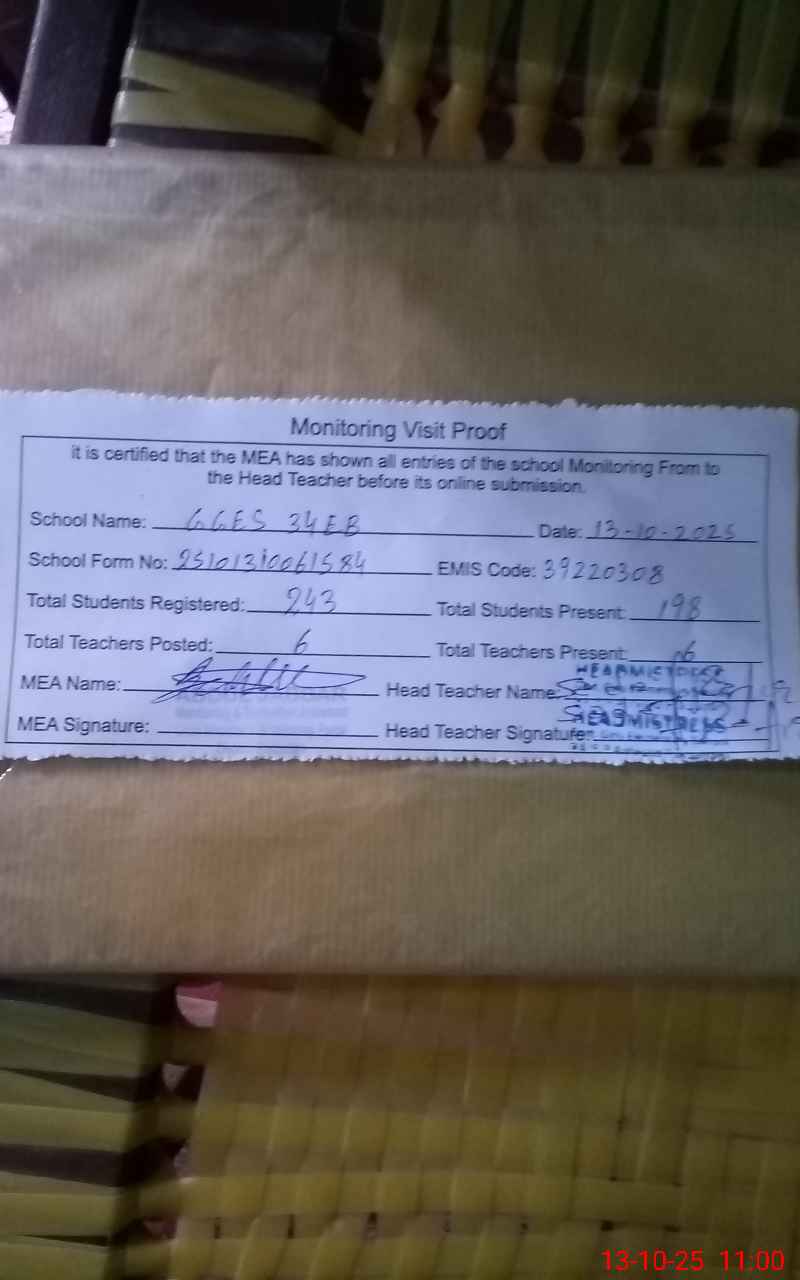 | Attendance Register | Head Teacher | MEA with School | Visit Proof |