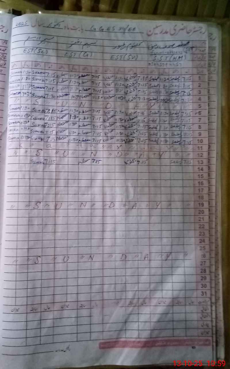 | Name: SA**** RA**** Designation: (School Headmaster's/Headmistress's) S.S.T.(GENERAL) Phone/Cell Number: 03**** |