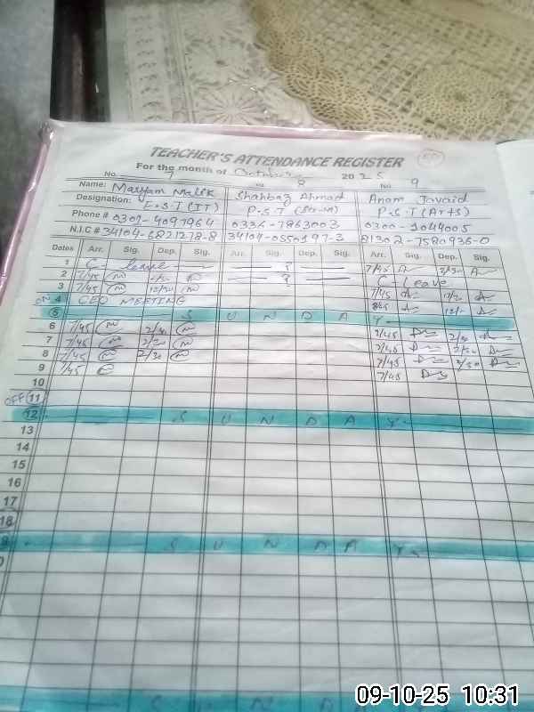 | Name: Az**** Ah**** Si**** Designation: (School Headmaster's/Headmistress's) EST English Phone/Cell Number: 03**** |