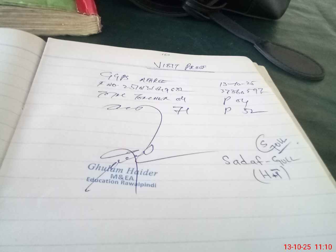 | Attendance Register | Head Teacher | MEA with School | Visit Proof |
