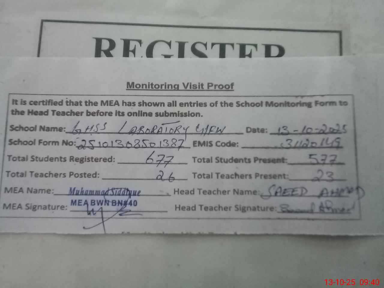 | EMIS Code: 31120149 | Name of School: GHSS LABORATORY 4/FW (ATTACH WITH QAED) CHISHTIAN | |||