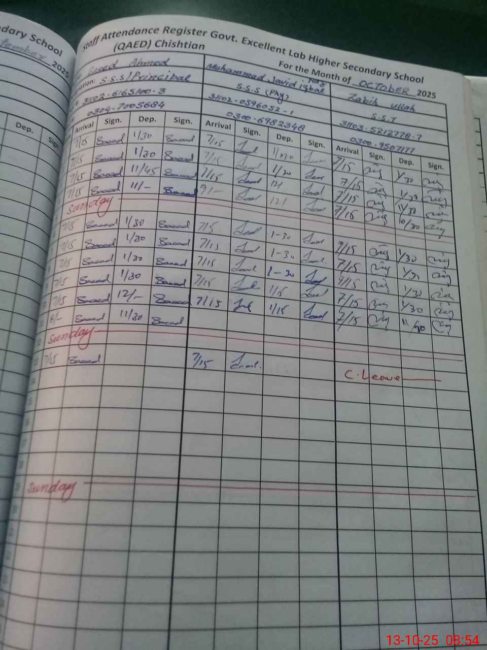 | Name: Sa**** ah**** Designation: (School Headmaster's/Headmistress's) Principal Phone/Cell Number: 03**** |