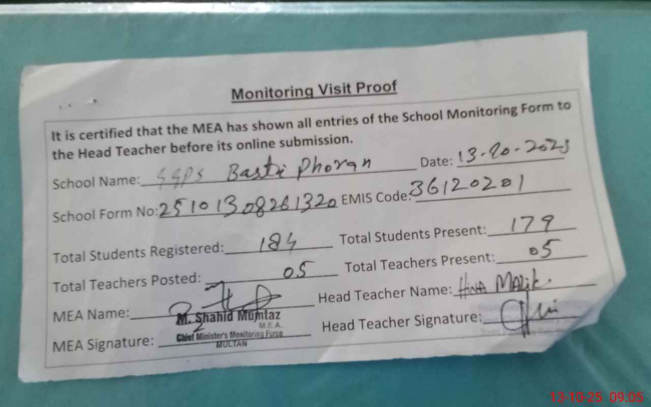 | EMIS Code: 36120201 | Name of School: GGPS BASTI PHORAN SHUJABAD | |||