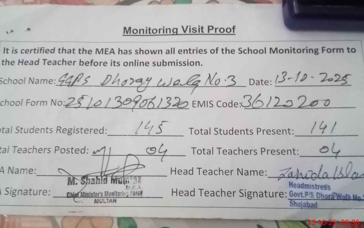| EMIS Code: 36120200 | Name of School: GGPS DOHARY WALA NO.3 (FATEH KHAN WALA) | |||