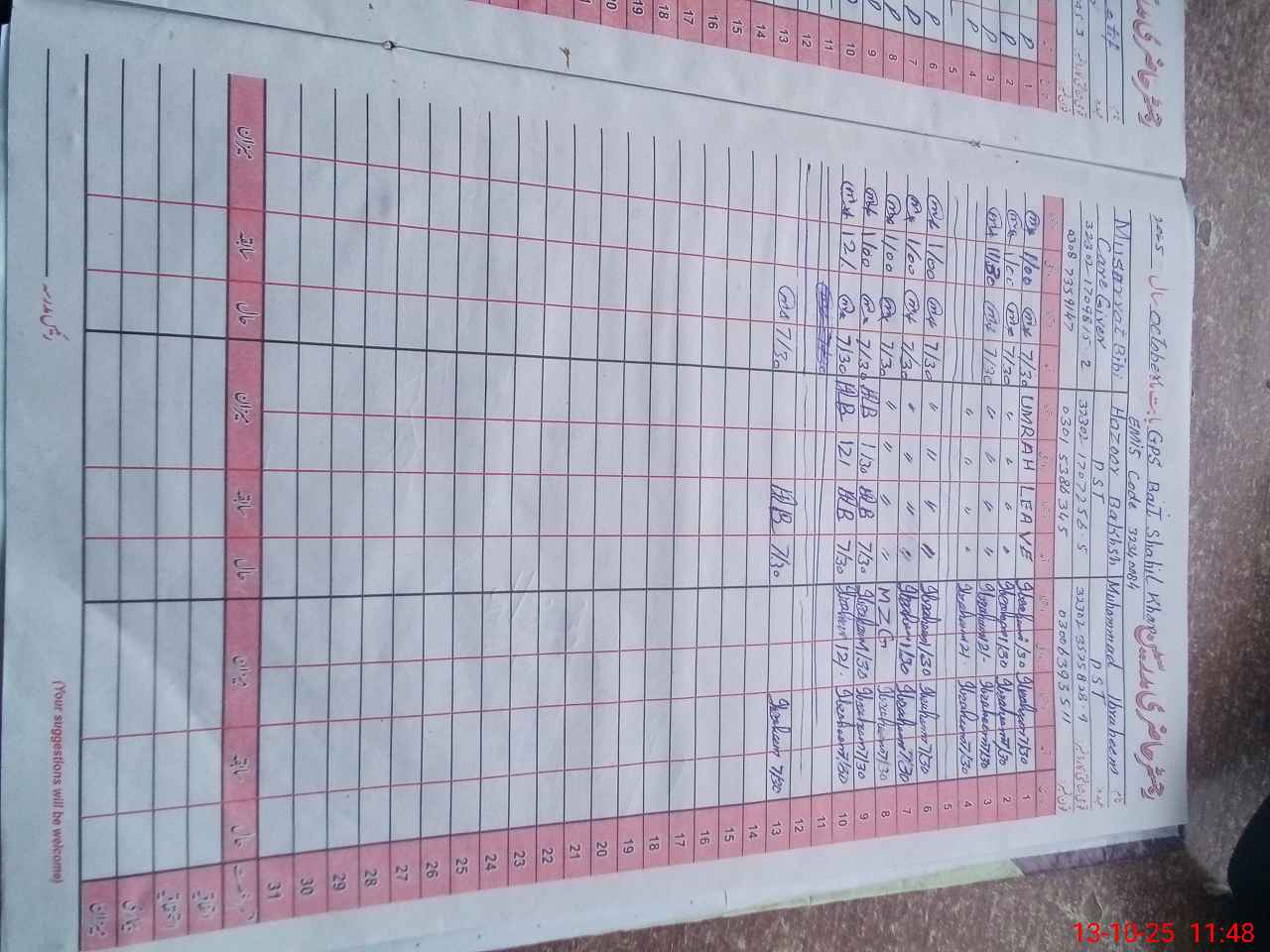 | CNIC | Full Name | Designation | R/C | Absence During Last Calender Month |