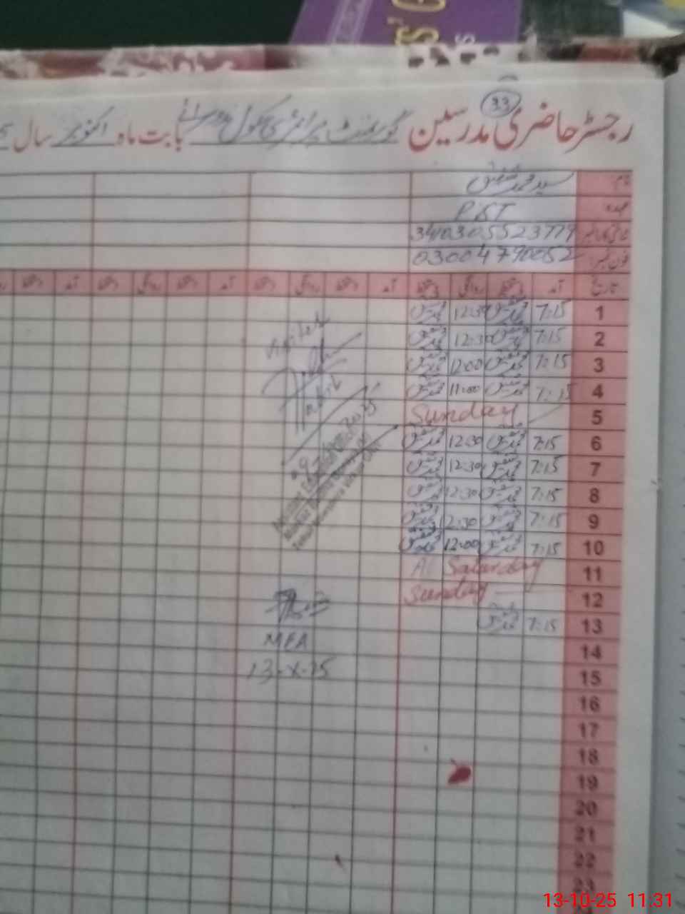 | Name: SY**** MU**** SH**** Designation: (School Headmaster's/Headmistress's) PST Phone/Cell Number: 03**** |