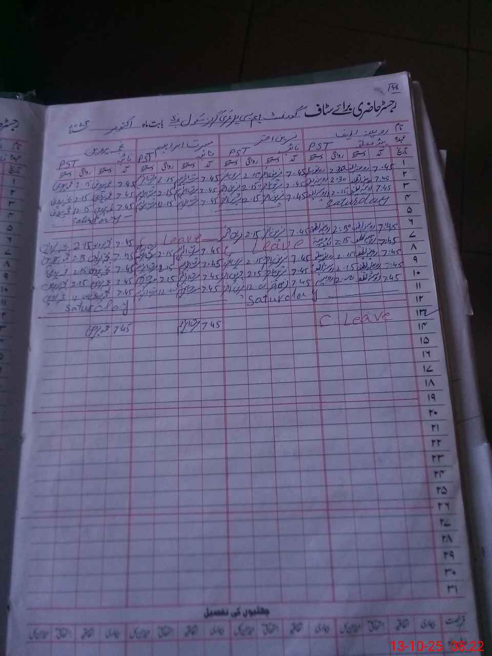 | Remarks (Use Separate Page if Required): NSB AND FTF RECORD NOT AVAILABLE BOOKS RECORD NOT AVAILABLE ROBINA LATIF PST ABSENT DUE TO SECTION LEAVE NOT AVAILABLE NASREEN AKHTAR PST ABSENT DUE TO CAME 0825 HRS | |||||
