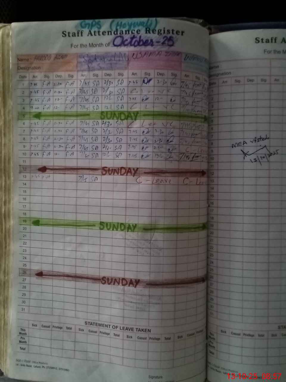| 34**** | Us**** Za**** | PST | Regular | 0 | 0 | 0 | 0 | 0 | 0 | 0 | 0 | 0 | Absent (Un-Authorized) |