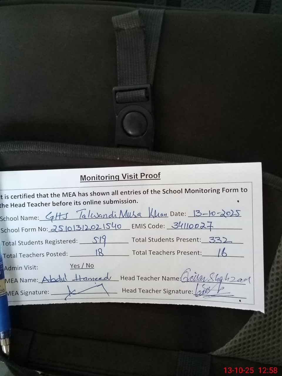 | EMIS Code: 34110027 | Name of School: GHS TALWANDI MUSA KHAN | |||