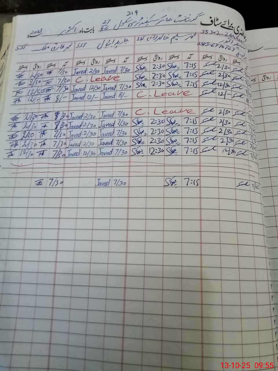 | Name: Sa**** An**** Designation: (School Headmaster's/Headmistress's) I/c HM Phone/Cell Number: 03**** |