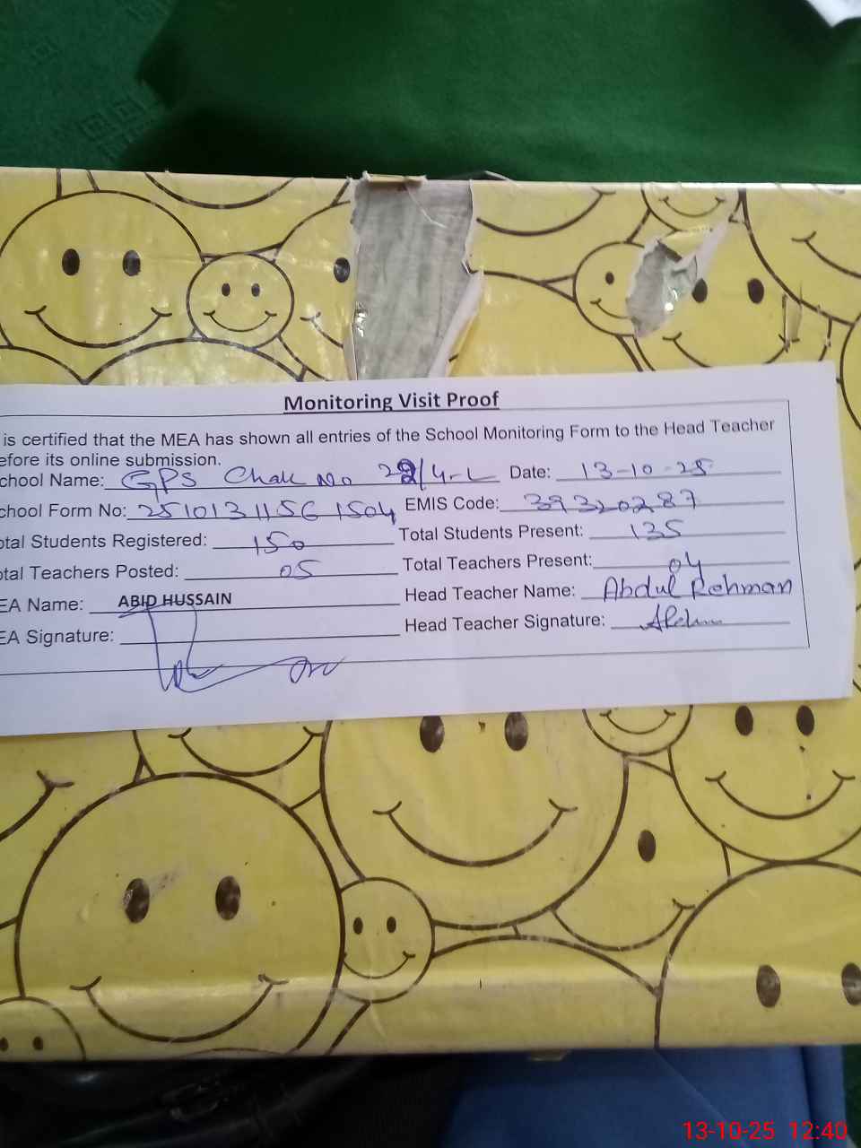 | EMIS Code: 39320287 | Name of School: GPS CHAK 22/4-L | |||