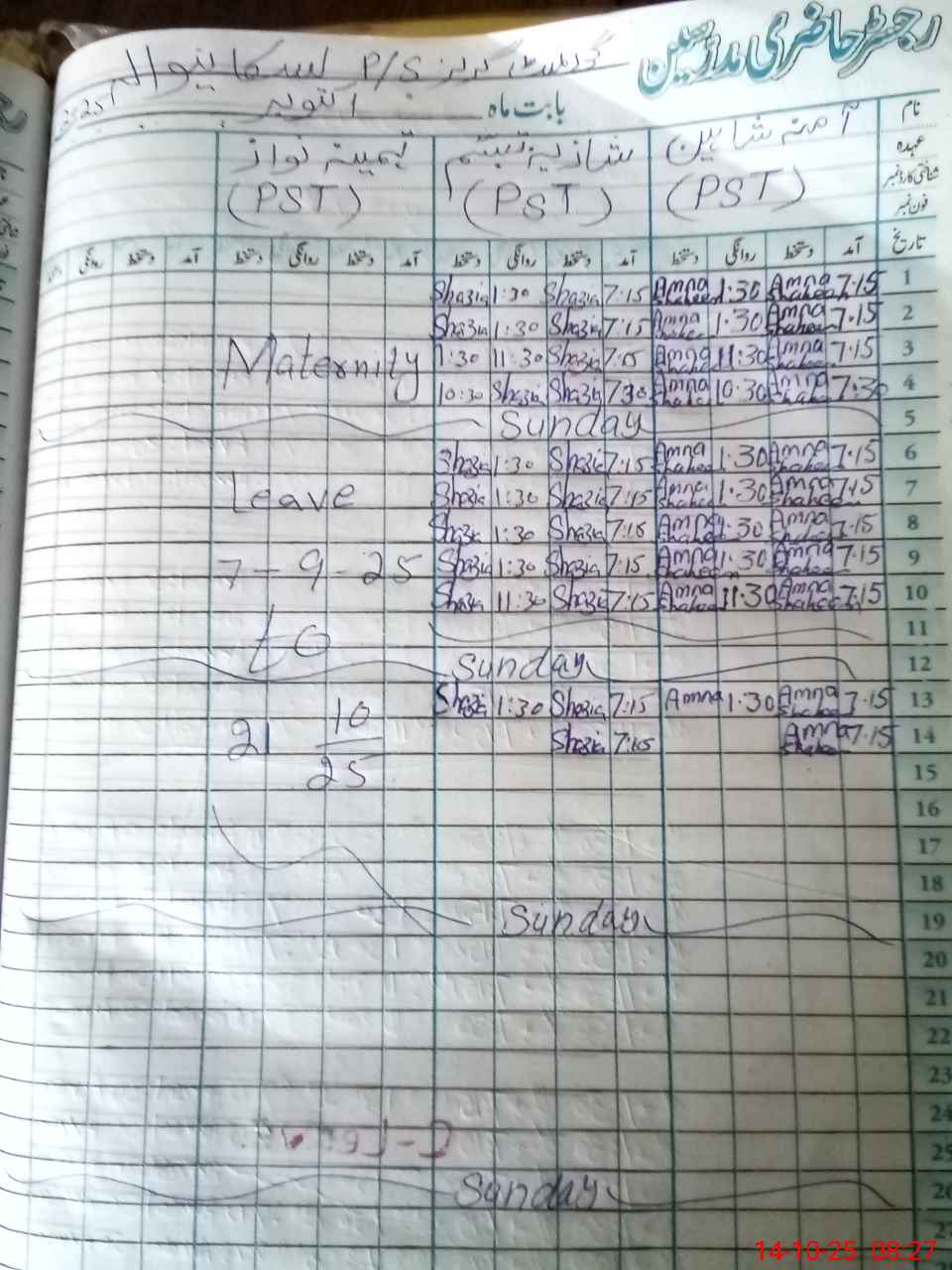 | 32**** | Te**** Na**** | PST | Regular | 24 | 0 | 0 | 24 | 0 | 0 | 0 | 0 | 0 | Maternity |