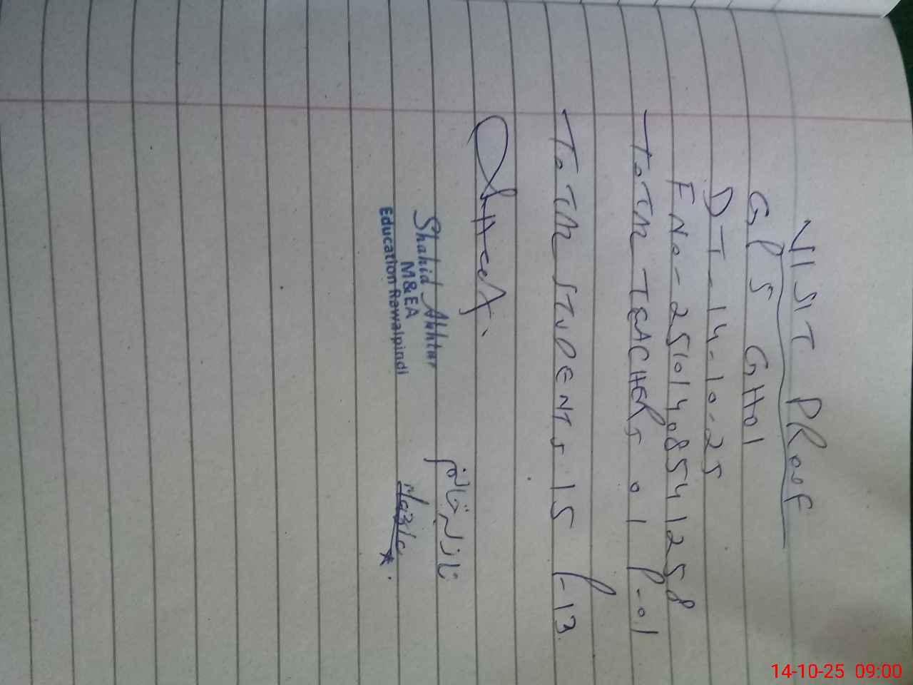 | Name: Mu**** Ae**** Ah**** Designation: (School Headmaster's/Headmistress's) PST Phone/Cell Number: 03**** |