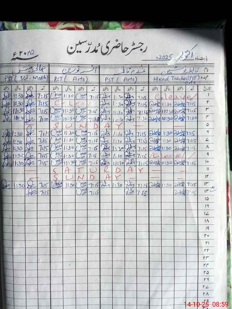 | Leave | Duty | Absent | Maternity | Medical | Ex- Pak |