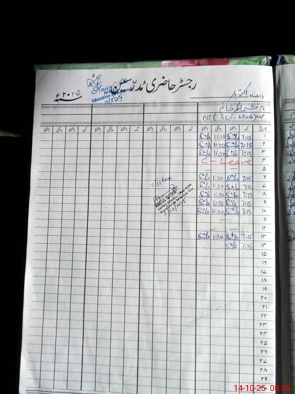 | CNIC | Full Name | Designation | R/C | Absence During Last Calender Month |