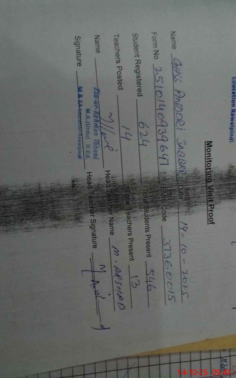 | EMIS Code: 37360015 | Name of School: GHSS PINDORI JABBAR | |||