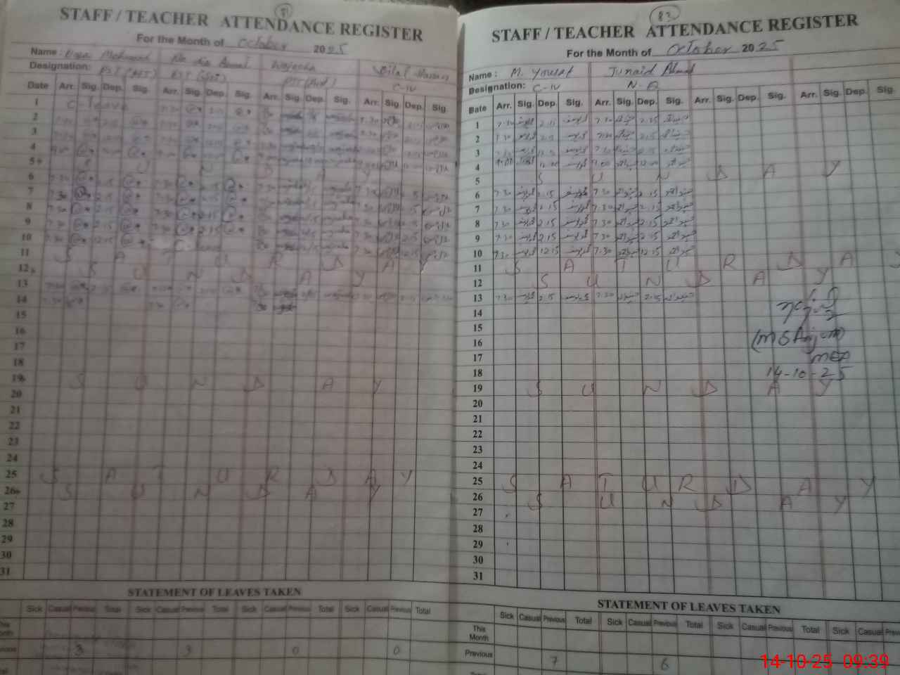 | 34**** | JU**** AH**** | NAIB QASID | Regular | 0 | 0 | 0 | 0 | 0 | 0 | 0 | 0 | 0 | Absent (Un-Authorized) |