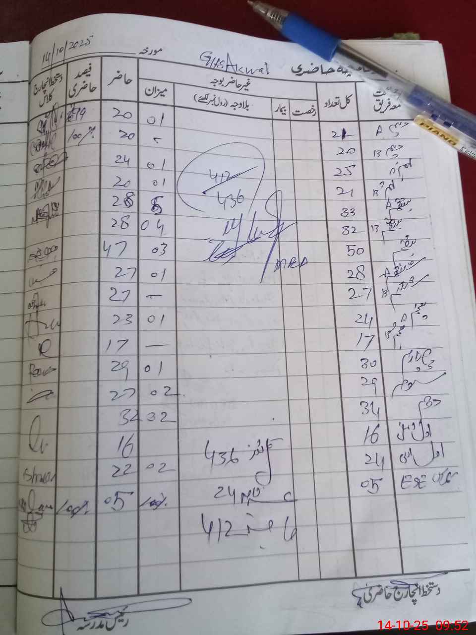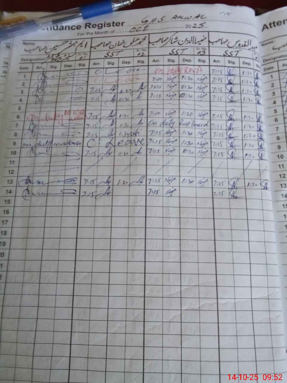 | CNIC | Full Name | Designation | R/C | Absence during last cal. month |