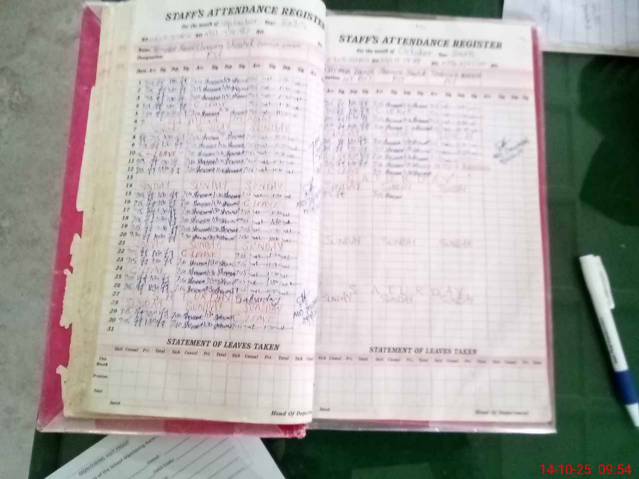 | Leave | Duty | Absent | Maternity | Medical | Ex- Pak |