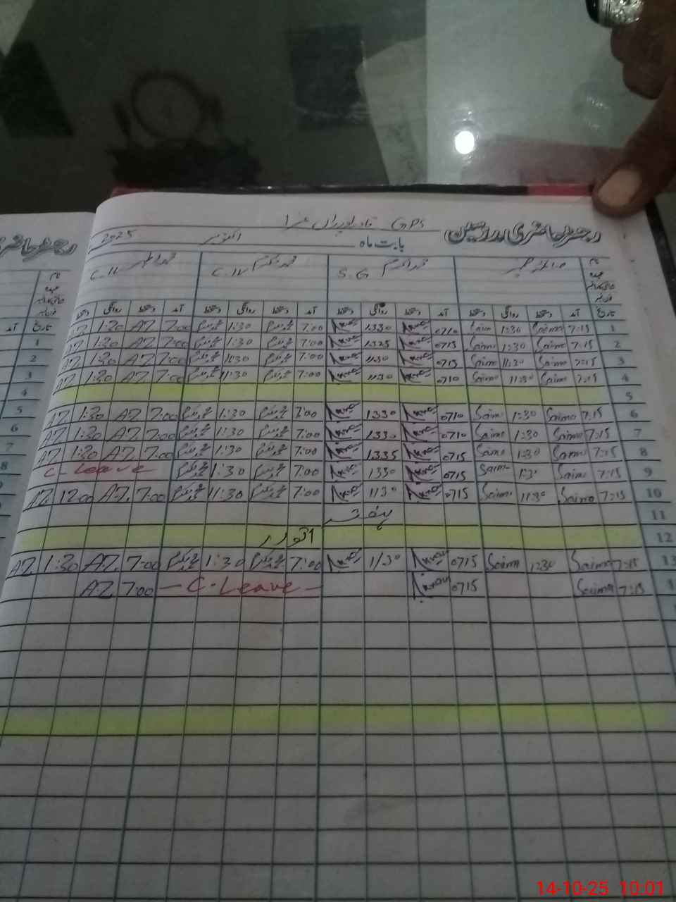 | CNIC | Full Name | Designation | R/C | Absence during last cal. month |