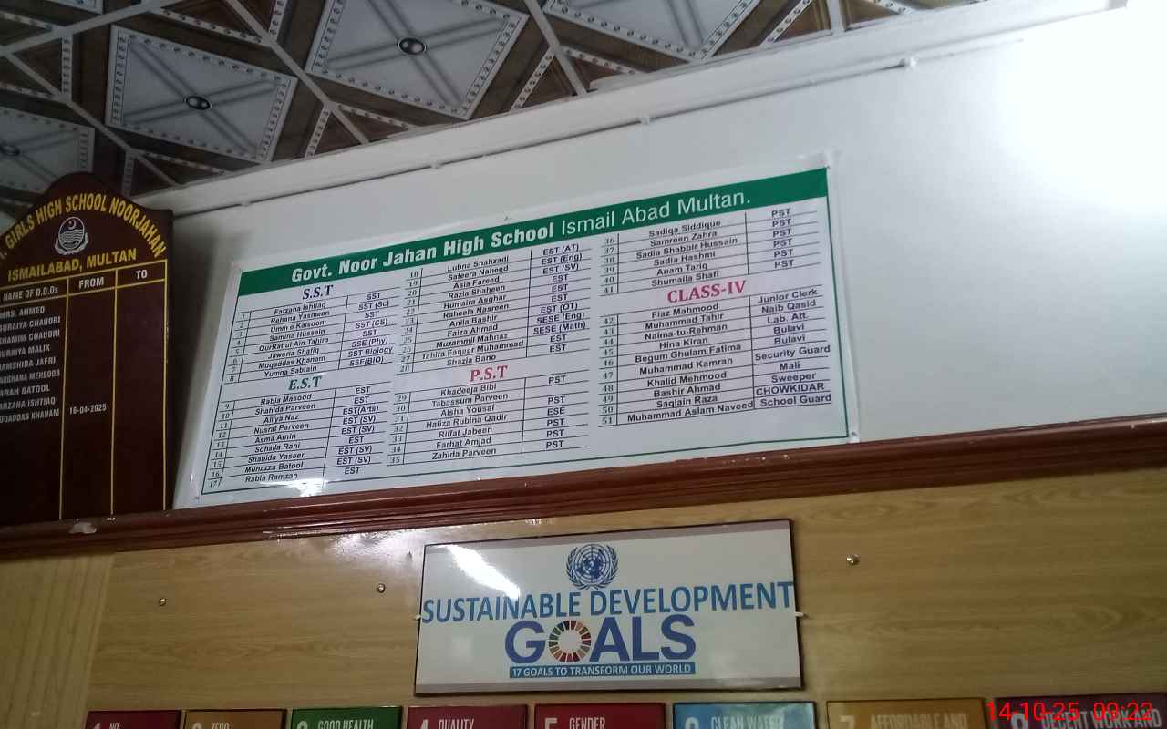 | EMIS Code: 36110045 | Name of School: GGHS NOOR JEHAN ISMAIL ABAD MULTAN | |||