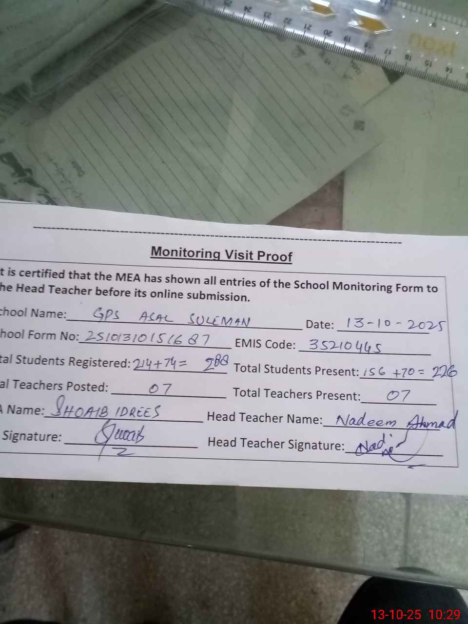 | EMIS Code: 35210445 | Name of School: GPS ASIL SULEMAN | |||