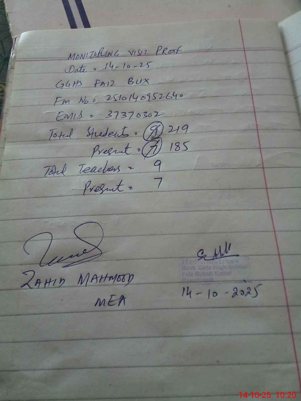 | EMIS Code: 37370302 | Name of School: GGHS FAIZ BUX | |||
