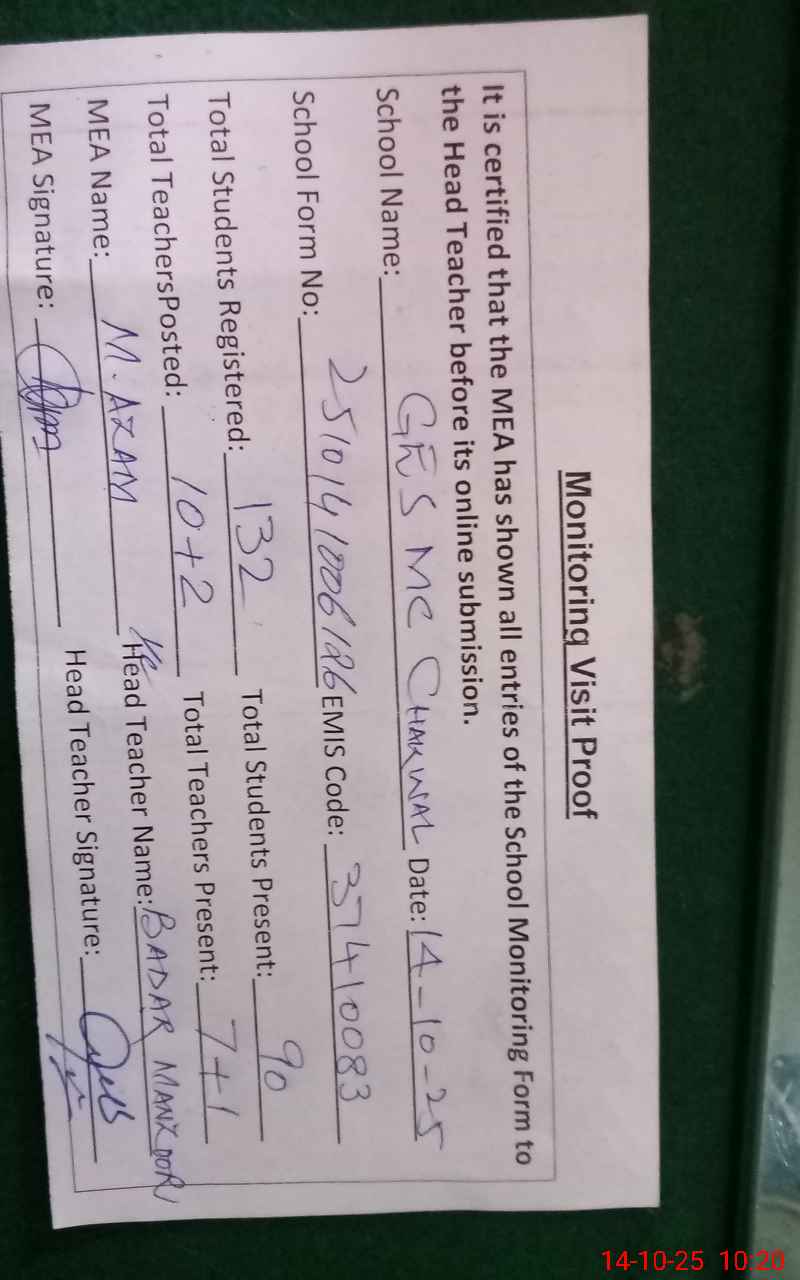 | EMIS Code: 37410083 | Name of School: GES MC CHAKWAL | |||