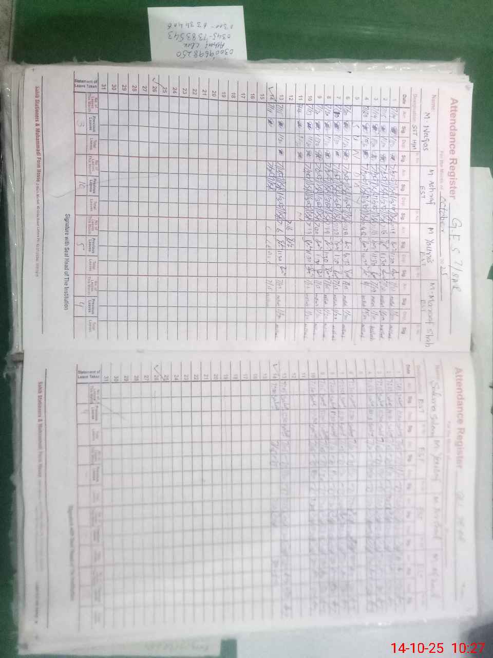 | CNIC | Full Name | Designation | R/C | Absence During Last Calender Month |