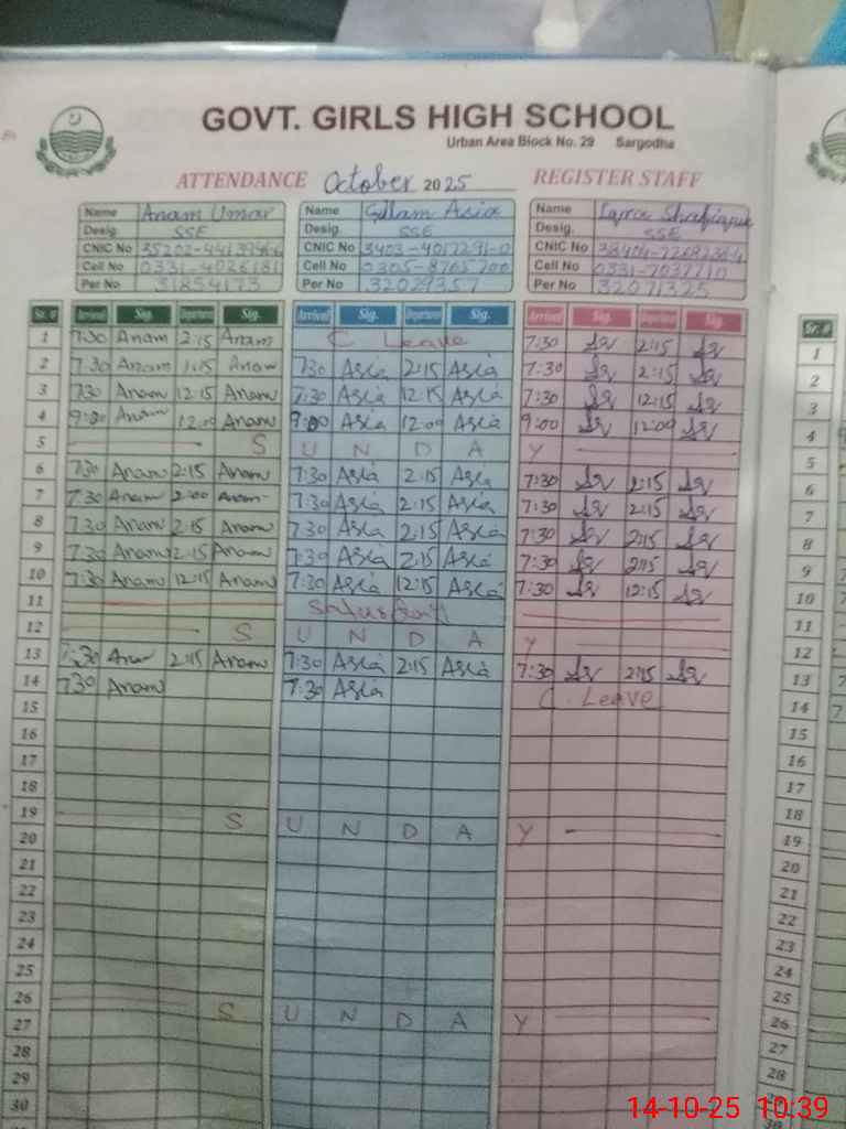| EMIS Code: 38420658 | Name of School: GGHS BLOCK NO.29 URBAN AREA | |||