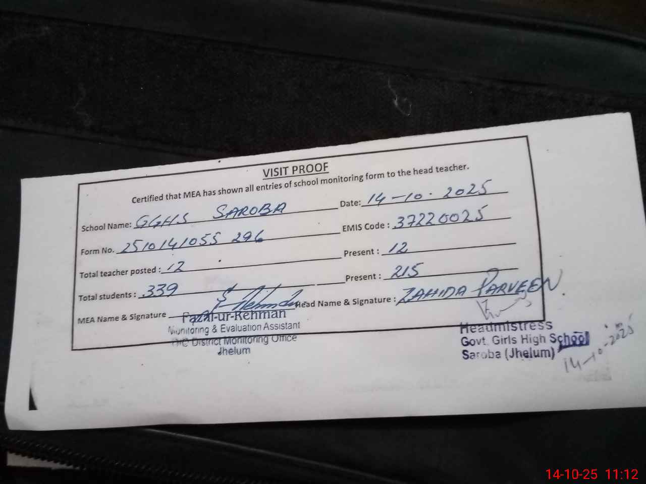 | EMIS Code: 37220025 | Name of School: GGHS SAROBA | |||