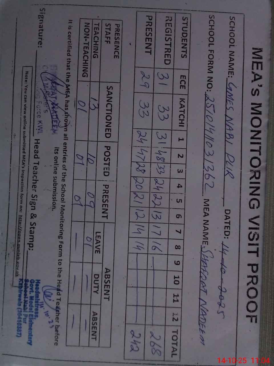 | EMIS Code: 36410387 | Name of School: GMES NABI PUR, KABIRWALA | |||
