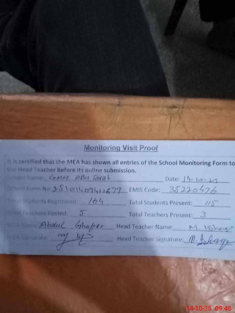 | EMIS Code: 35220476 | Name of School: GMMS ABU TARB SHABLI TOWN BUND ROAD | |||