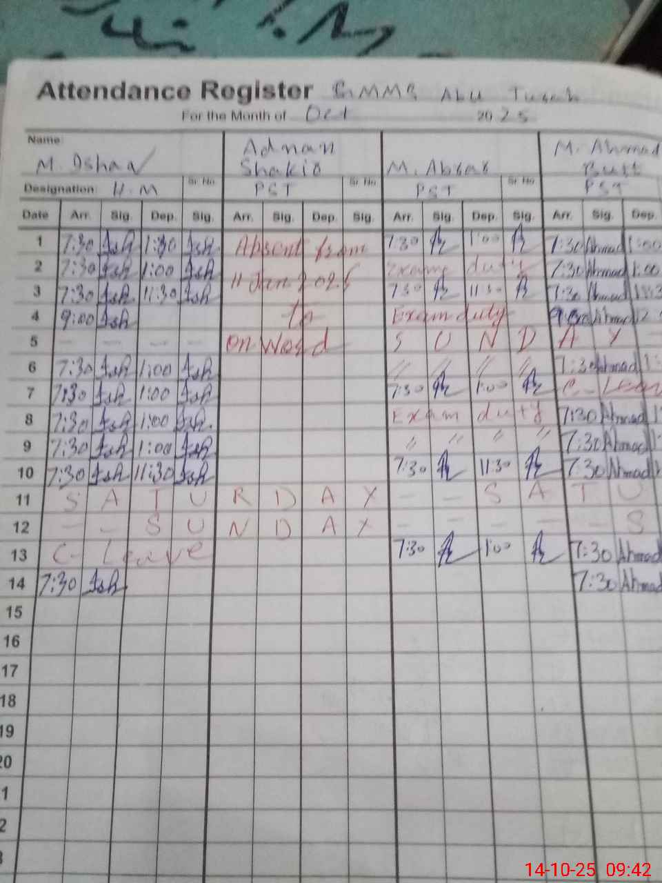 | 35**** | Mu**** Ab**** | PST | Regular | 0 | 0 | 0 | 0 | 0 | 0 | 0 | 0 | 0 | Exam Duty |