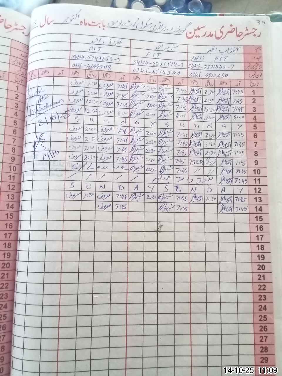 | Name: AF**** AZ**** Designation: (School Headmaster's/Headmistress's) PST Phone/Cell Number: 03**** |