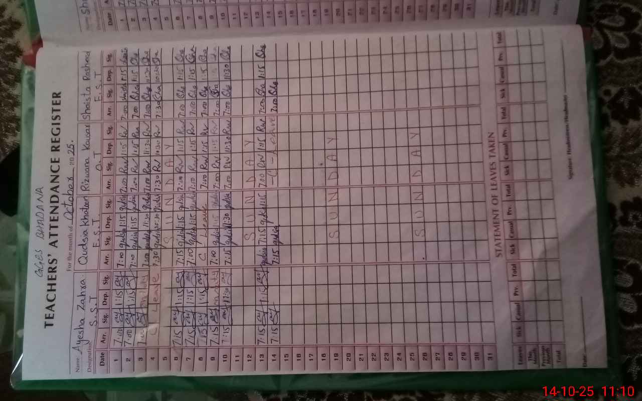 | Attendance Register | Head Teacher | MEA with School | Visit Proof |