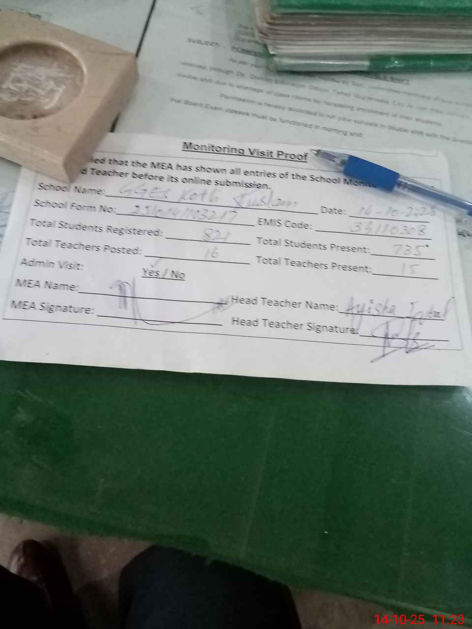 | Certified that this School was Inspected by the Undersigned MEA/DMO Today and the Information Stated Above is as Per Record. | |||||